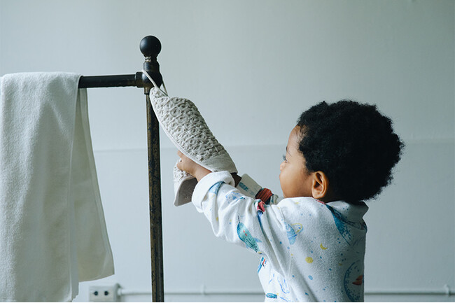 子どもの集団生活で持ち物指定されることも多い、ループ付きタオル。柔らかなワッフル地でさらりとした使い心地は、長く使うほど更に肌なじみの良い手触りへ。