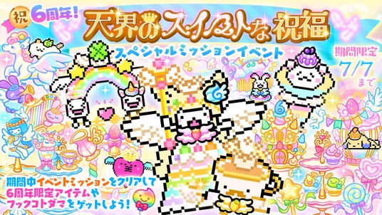 6周年を記念した特別なイベント「天界のスイートな祝福」を7月7日まで開催中です。イベントミッションをこなし「ことだまバルーン」を集めて、期間限定のキャラクターや家具をゲットしましょう!