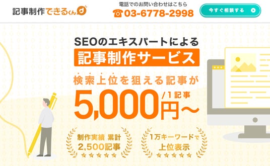 月額数千円でホームページ制作が依頼できる「ホームページできるくん」に加えて、この度「記事制作できるくん」を開始いたします。
