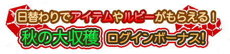 期間中にログインすると、毎日アイテムやルビーがもらえるよ♪