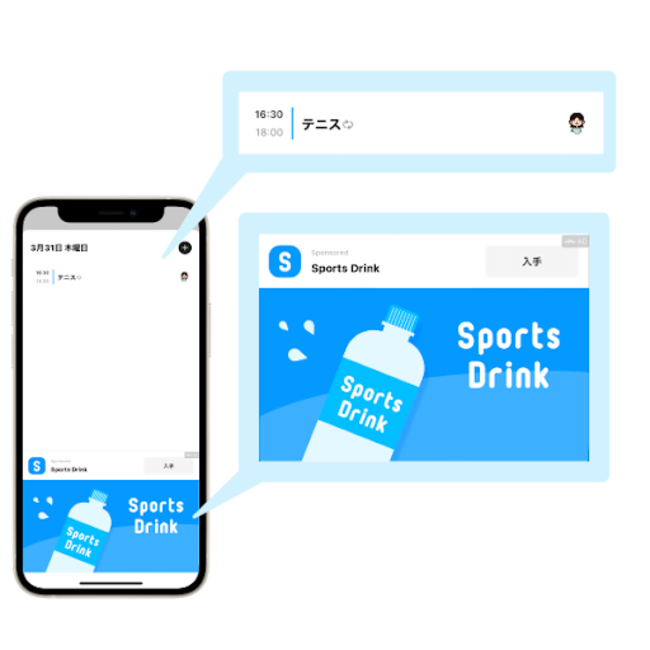 セルフサーブの予定ターゲティングでは、例えば幼稚園の送り迎えなど育児関連の予定を登録している人にランドセルの広告、テニスやサッカーなどスポーツ関連の予定を登録している人にスポーツドリンクの広告を配信するといった形で、ユーザーの興味・関心にマッチした広告配信を行うことが可能です。