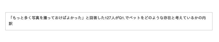 「もっと多く写真を撮っておけばよかった」と回答した127人がQ1.でペットの存在をどのような存在だと考えているかの内訳を見てみると、「子ども」や「パートナー」など家族のような存在と考えている人の割合が高いことが見受けられます。