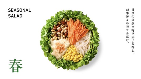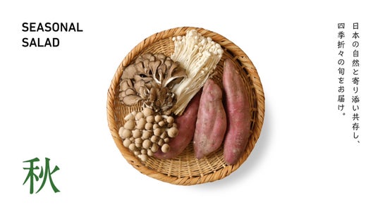 日本には四季があり、それぞれの季節に栄養価が高く美味しい“旬”の野菜があります。私たちは「季節限定サラダ」の生みの親として、日本の生産者の方々と協力しながら季節の野菜を厳選し、2か月毎にお客さまにお届けしています。日本にある豊かな四季と食材を、サラダボウルを通して楽しんでいただきたいと考えております。