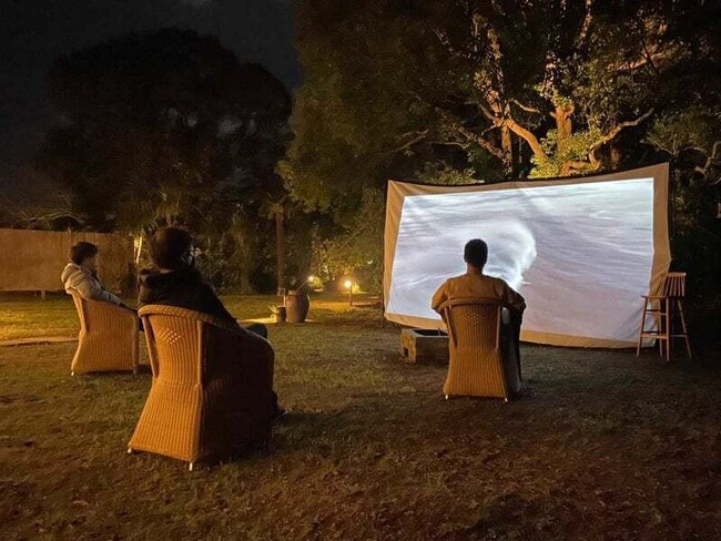 ▼屋外モニターとプロジェクターで映画やホームビデオの鑑賞