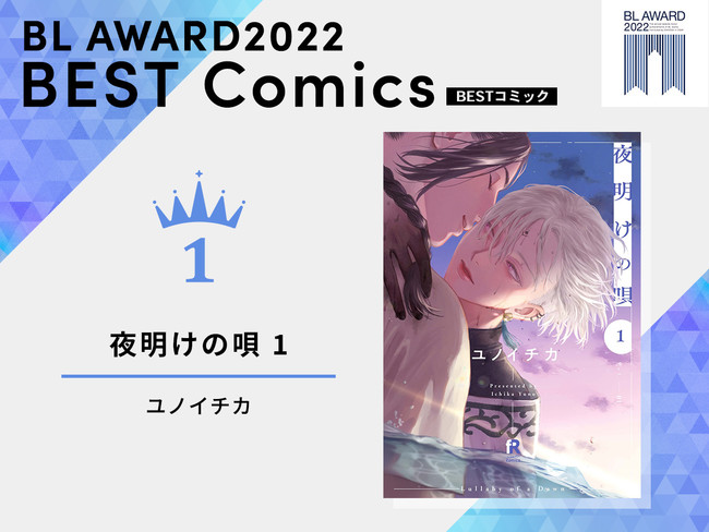 BLアワード2022は、孤独な戦巫子と少年の愛を描いたファンタジー『夜明けの唄 1』(ユノイチカ)がBESTコミック部門1位を獲得しました。異世界転生や骨太なファンタジーが徐々に注目を浴び始めた2021年。流行の変化を象徴するような結果となりました。