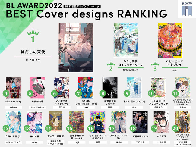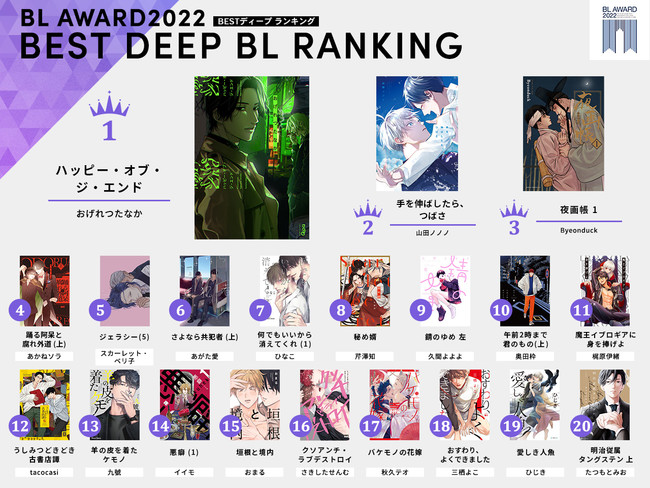 (2)BLアワード2022「コミック」「シリーズ」「次に来るBL」「官能」「ディープ」「小説」「攻」「受」「表紙デザイン」各部門1位~10位の作品およびシリーズ既刊や新刊等関連作品