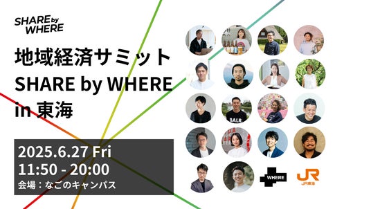 株式会社WHERE(本社:東京都千代田区神田、代表:平林和樹)・東海旅客鉄道株式会社(本社:愛知県名古屋市中村区名駅、代表:丹羽俊介)の2社は、東海エリアで経済を動かす起業家・公務員・大学教授など総勢約20名をスピーカーとして迎える地域経済サミット「SHARE by WHERE in 東海」を、愛知県名古屋市にて2025年6月27日(金)に開催します。