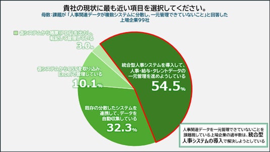 この課題を上げた企業の約55%が統合型人事システムの導入によるデータ基盤の整備により解決しようと考えている。
