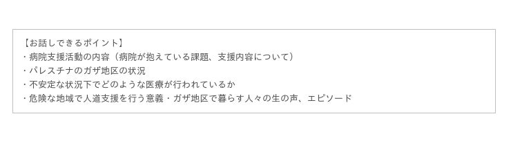 ~本年10月より新たに開始。”パレスチナ・ガザ病院支援”事業~