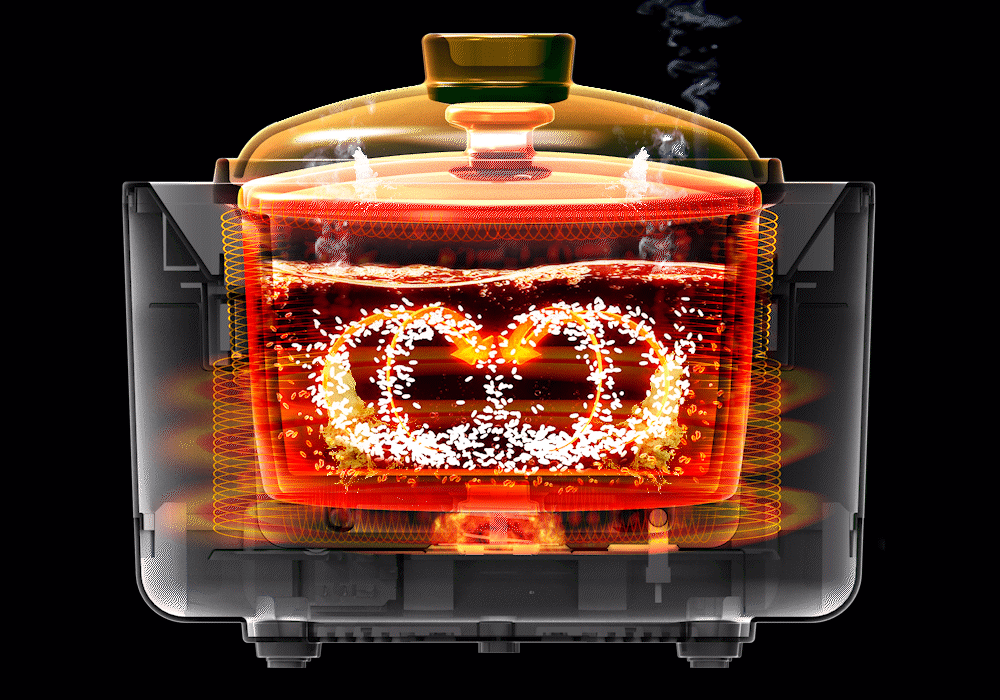 1000℃で焼きあげた独自の土鍋釜と、360度全方位から均一に加熱する本体構造と遠赤外線効果により、ふっくらとしたお米とおこげを美味しくお召し上がりいただけます。