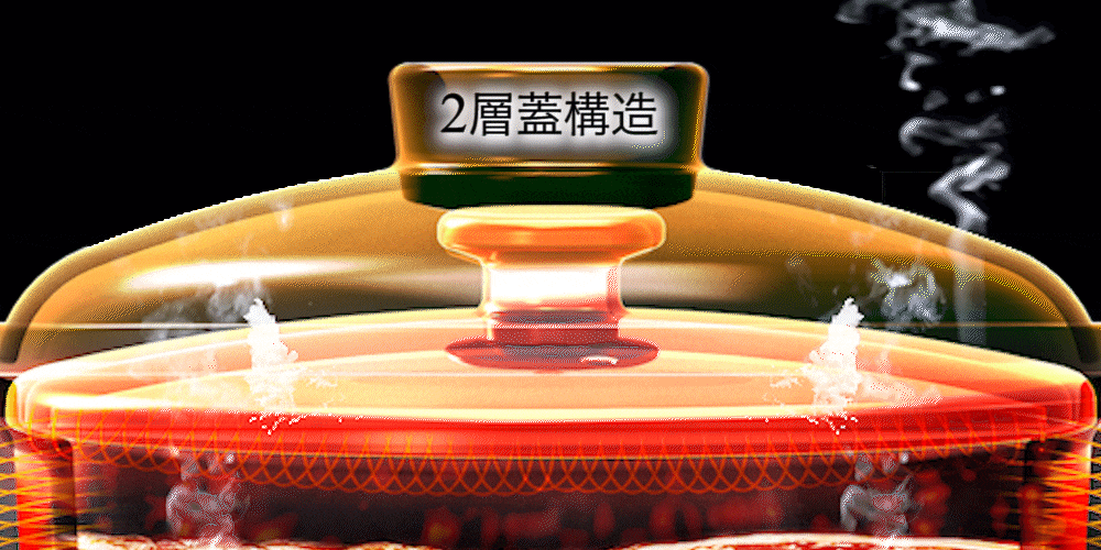 この構造により内蓋が常に温められ、上部からも加熱することができます。