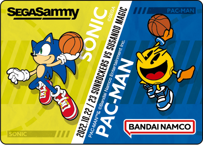 セガの「ソニック・ザ・ヘッジホッグ(以下 ソニック)」とバンダイナムコエンターテインメントの「パックマン」がゲストとして登場します。チームマスコット「サンディー」とともにご来場のお客さまをお出迎えするほか、ハーフタイムイベントにも出演します。試合BGMにゲーム音楽が流れる演出にも注目です。