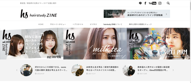 美容師・美容室向け情報メディア「hairstudy ZINE(ヘアスタディ ジン)」は、美容師・美容室オーナー・ヘアケアメーカーご担当者など、美容師業とヘア美容業界に関する幅広い方々へ向け、有益な情報をお届けするネットメディアです。