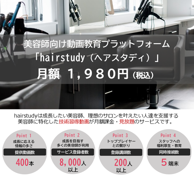 ~これまでの価格を大幅に見直し 月額1,980円(税込)にて提供、若手美容師育成を支援する取り組みを加速~