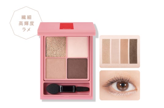 ニュートラルなベージュをメインカラーにした上品なベージュパレット。シーンや年代を問わず使いやすいカラー。繊細にキラキラと輝く高輝度ラメ。
