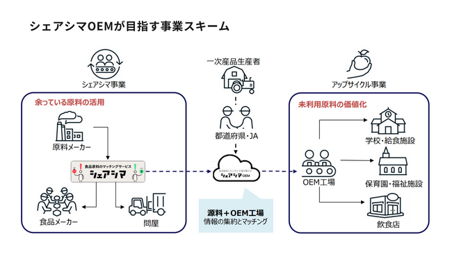 食品業界においても、未利用原料の活用事例は増えてはいるものの、自社のメイン事業、主要製品とは別に製造ラインを構築すること、そこに多くの時間や費用を費やすことは簡単ではありません。シェアシマでは、これまでのアップサイクル商品の開発経験と、この度スタートさせた「シェアシマ OEM」の提案力をセットさせることで、廃棄されていた未利用原料の活用、製品化を加速させます。