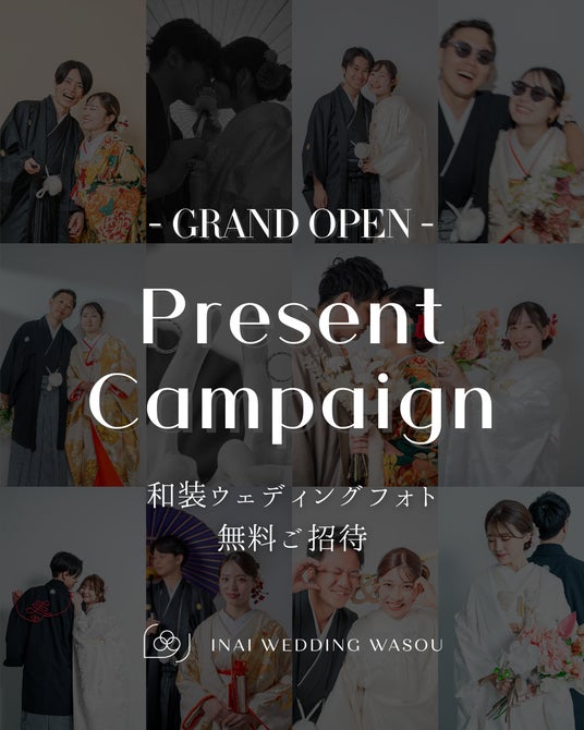 婚礼和装専門のフォトスタジオ「INAI WEDDING WASOU」 は、関西初出店の大阪店オープンを記念して、プレ花嫁・カップル向けに 無料撮影プレゼントキャンペーン を実施します。