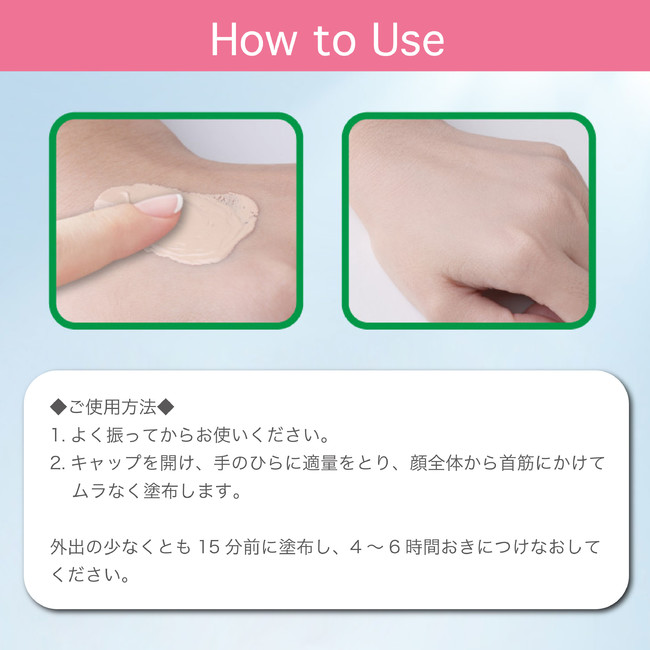 ティントタイプで水や汗に強く、皮脂吸着の多孔質パウダー配合した日焼け止めです。