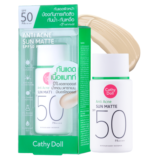株式会社日本機能性コスメ研究所( https://www.cosmelabo.shop/ )は、タイコスメブランド『CathyDoll(キャシードール)』から、灼熱の国タイのニキビケアに特化した日焼け止め「サンマット」を日本発売いたします。オイリー肌のために作られた、サラサラ仕上げで軽い付け心地。マスクにつかず、男女問わず使える日焼け止めです。水や汗に強く、自然に肌をカバー。日焼け止め・化粧下地・オイルコントロール・ニキビケア・保湿アイテムとしても、マルチに使えるアイテムです!キャシードール公式「JFラボコスメ」にて2022年6月21日より発売開始いたします。