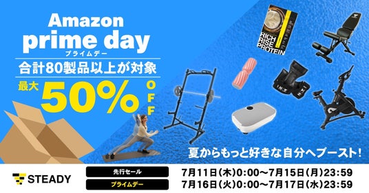Amazonで2024年7月16日(火)0:00から7月17日(水)23:59にかけて開催される「Amazonプライムデー」および2024年7月11日(木)0:00から7月15日(月)23:59にかけて開催される先行セールにて、80以上のホームフィットネス / ストレッチ製品を最大50%OFFで販売。《ビッグセール初登場》のホームジムシリーズを筆頭に、今夏より理想の自分へブーストをかけたい方必見です。