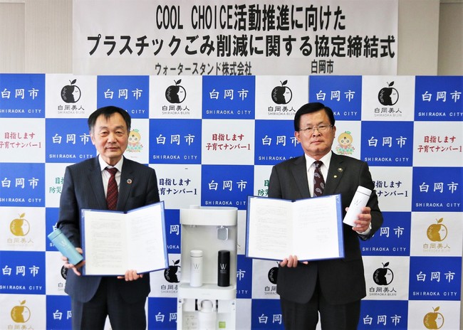 水道直結ウォーターサーバーのレンタル事業を行うウォータースタンド株式会社(本社:埼玉県さいたま市、代表取締役社長:本多 均、以下当社)は、2022年3月11日(金)に埼玉県白岡市(市長:藤井 栄一郎)と「COOL CHOICE活動推進に向けたプラスチックごみ削減に関する協定」を締結したことをお知らせいたします。