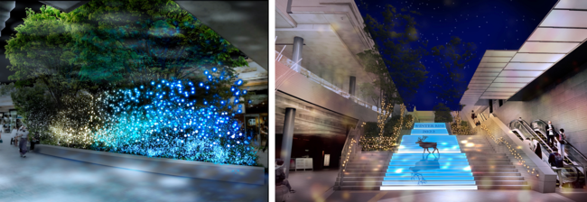 二子玉川ライズ全体を流れる“光の川”を表現したイルミネーション演出や揺らめく光が幻想的な空間を創り出す「鏡写しのクリスマスツリー」が登場!