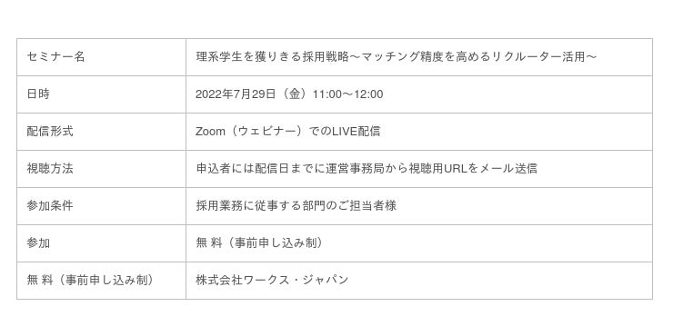 ワークス・ジャパンでは、「 WORKS REVIEW 」というオンラインセミナーを立ち上げました。WORKS REVIEWとは、企業の人事採用担当者様を限定としたセミナーです。 採用、教育・研修、人事戦略など、テーマごとに先進的に取組む多くの企業のケースや経験を集めて、集合知を活用しながら人事課題をご紹介していきます。