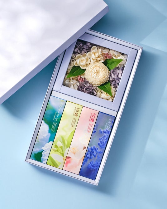 <「母の日参り」にもおすすめ お線香「かたりべ」のフラワーボックスギフト>