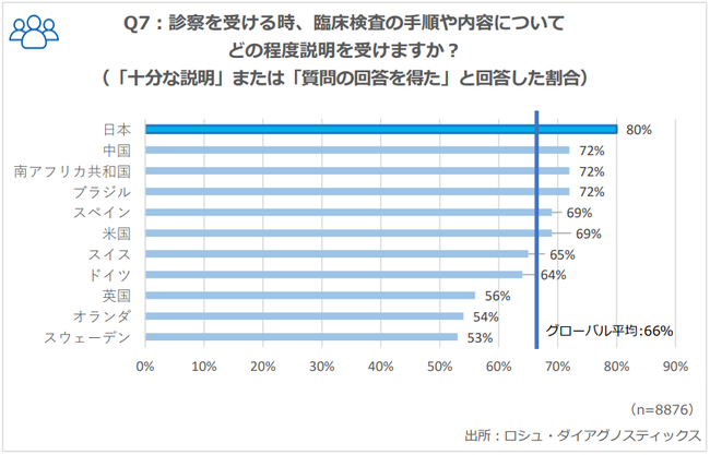 生活者の8割が、検査について医師から「十分な説明」または「質問への回答を得た」と回答、11か国でトップ