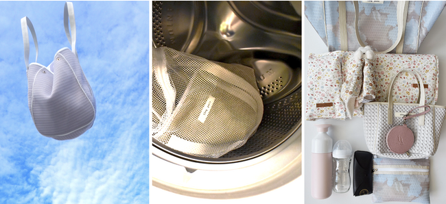 とびきりおしゃれなのに「軽くて、洗えて、大容量」。ウェットスーツと同じネオプレーン素材、透けない新メッシュ素材などを用いており、おしゃれで遊び心たっぷりなのに軽量で耐久性に優れ機能性も抜群。中には洗濯機OKのバッグもあり、手軽に洗えて、明るい色でも汚れの心配はなし。