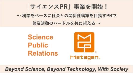 株式会社メタジェン(代表取締役社長 CEO:福田真嗣 以下、「当社」)では、「腸内環境に合ったヘルスケアをあたりまえにする」ことをミッションとし、腸内環境に関する価値あるデータを取得し考察を行う「研究開発支援事業」、エビデンスを基盤に個々人の腸内環境に合わせたソリューションを提供する「層別化ヘルスケア事業」の2つを事業の柱として、「腸内デザイン(R)」を推進してきました。この度、当社が大切にしている価値観である「Beyond Science, Beyond Technology, With Society(最先端科学技術を追求し、それを社会とつなぐパイオニアでありつづける」ことを、「サイエンスPR(Science Public Relations)」という新しい事業として実装することで、パートナー企業の皆様のPR活動にも伴走し、社会への啓発活動をより本格化していきます。