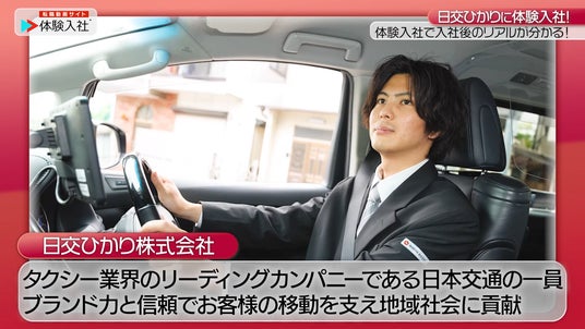 株式会社体験入社(本社:神奈川県鎌倉市、代表取締役:松本聖司)は、この度、タクシー業界のリーディングカンパニーである日本交通グループに属する日交ひかり株式会社(以下、日交ひかり)が、当社の提供する採用動画サービス「体験入社動画」を導入したことをお知らせいたします。この導入は、「入社前には“入社後のリアル”が見えにくい不安」という課題を解消し、日交ひかりが求める「自社にマッチした人材」の獲得をサポートいたします。