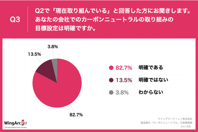 3.カーボンニュートラルに取り組む企業の82.7%は、「目標設定は明確」と回答