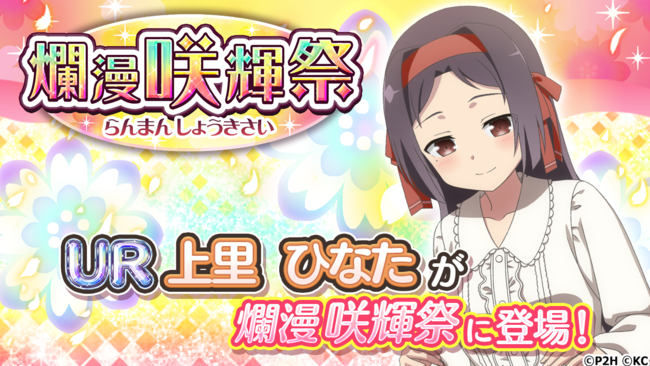 株式会社オルトプラス(本社:東京都豊島区、代表取締役CEO:石井 武、東証1部:3672)は、大好評配信中のスマートフォンゲーム・PCブラウザゲーム『結城友奈は勇者である 花結いのきらめき』(略称:ゆゆゆい)において、『UR 誠実な愛 上里ひなた』が新登場する爛漫 咲輝祭を開催したことをお知らせします。