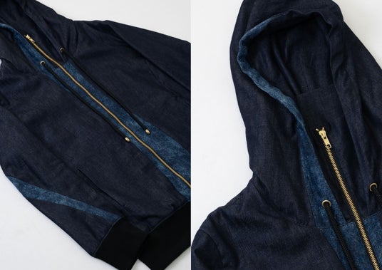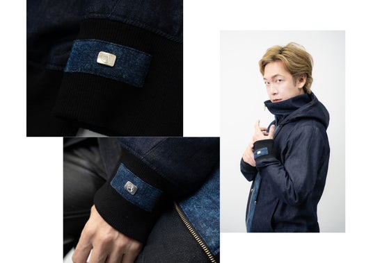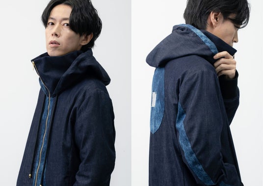 第3弾では、待望のアウターウェア『美星デニムパーカー』を共同制作。今回のコラボレーション企画は、青木被服の中でも人気素材の「美星デニム」を使用したジップアップパーカーとなっております。