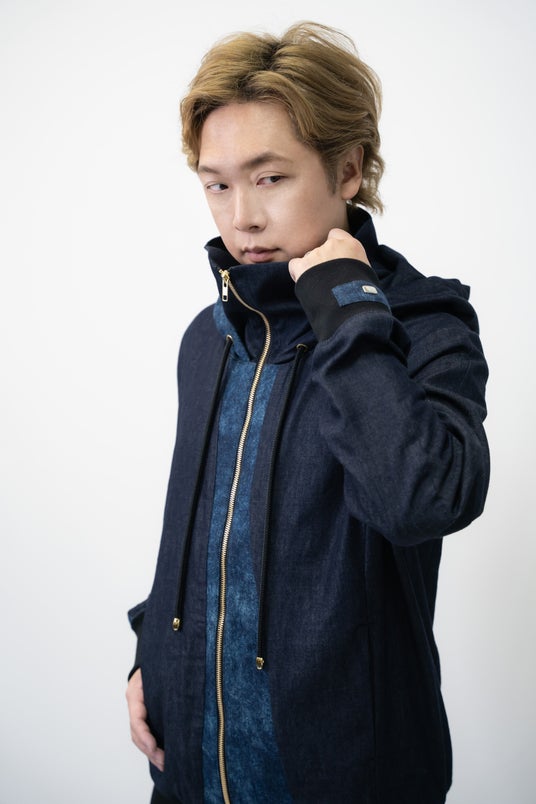 [立花慎之介×青木被服]コラボ企画第3弾!「美星デニム」を採用したジップアップパーカーが登場。岡山県美星町の天の川や満月を再現した美星デニムの新作が応援購入サイトMAKUAKEにて予約開始!!