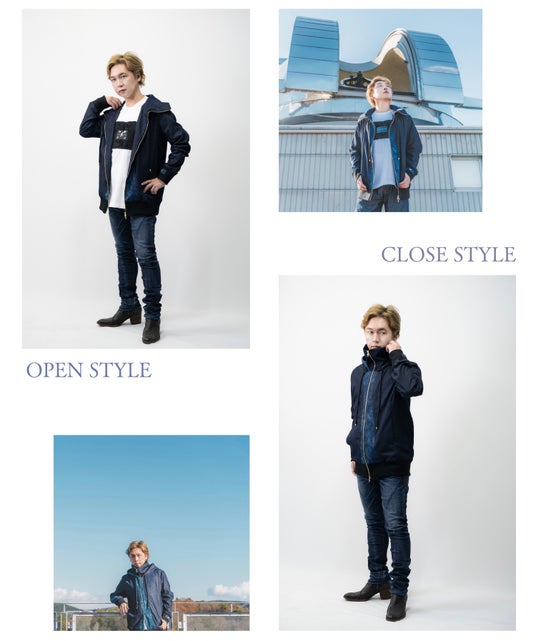 ハイネックブルゾンとフードパーカーの両方の機能が、保温性とスマートさを兼ね備えた新しいデザインに。