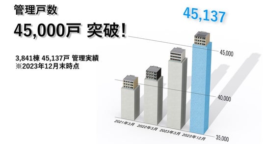 株式会社アーキテクト・ディベロッパー(所在地:東京都中央区 代表取締役CEO:木本 啓紀、以下、当社)は、2008年の設立から創業15年目となる2023年12月末時点の賃貸管理戸数が45,000戸を突破したことをお知らせいたします。ひとえに入居者様、オーナー様をはじめとしたステークホルダーの皆様のご支援、ご愛顧の賜物と心から感謝いたしております。