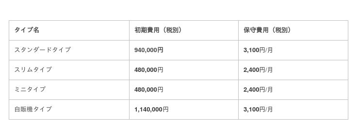 •スペースが限られた物件でも導入できるよう、通常サイズのスタンダードタイプの他に細身のスリムタイプや背の低いミニタイプ、自動販売機のスペースに設置できる自販機タイプも展開しています。設置スペースに合わせたオリジナルサイズの制作も承ります。