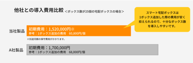 •他社製品と比較して1ボックスあたりの費用を抑えて導入できるので、物件規模に合わせた十分な数のボックスを導入出来ます。