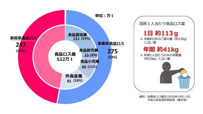 県内の食品ロス量は年間およそ25.5万トン発生しており、県民一人一日