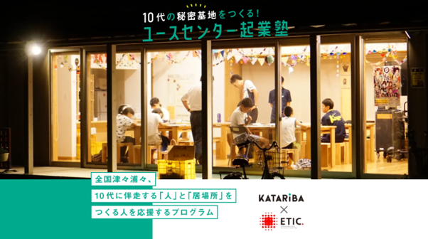認定特定非営利活動法人カタリバ(本部:東京都杉並区、代表理事:今村久美、以下カタリバ)と特定非営利活動法人エティックが協働して立ち上げた、10代の子どもたちのための居場所づくりに携わりたい人や団体を応援するインキュベーションプログラム「ユースセンター起業塾」は11月21日(月)より第二期の助成団体の公募をスタートしましたのでお知らせします。