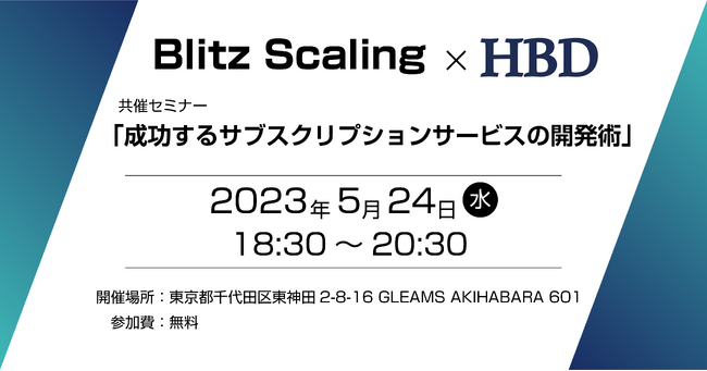 サブスクリプション事業を創る専門集団である株式会社Next Future Holdingsとセキュリティとディープテックの研究開発を行う株式会社フォアー、国内シェアNo.1の株式投資型クラウドファンディングを運営する株式会社FUNDINNOが主催するサブスク型スタートアップ支援プログラムBlitz Scaling(ブリッツスケーリング)と株式会社HBD(光通信グループにおいてファイナンス業務及び投資業務などを執り行う法人)は、サブスク型ビジネスを成功させるために重要なことや成功に導く設計について、無料セミナーを共催します。