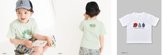 『こぐまちゃん(わかやまけん/作・絵 こぐま社)』・『はらぺこあおむし(エリック・カール/作・絵 もり ひさし/訳 偕成社)』・『ノンタン(キヨノサチコ/作・絵 偕成社)』・『からすのパンやさん(かこさとし/作・絵 偕成社)』の4つの絵本から、6種類のおはなしがお洋服になりました!