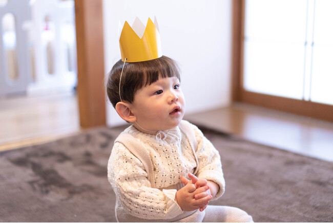 次に、そのタキシードクマーバとお揃いで、お子さまが冠れる王冠のかぶりもの。クマーバと一緒に、お子さまの「本日の主役!」感を演出できます。
