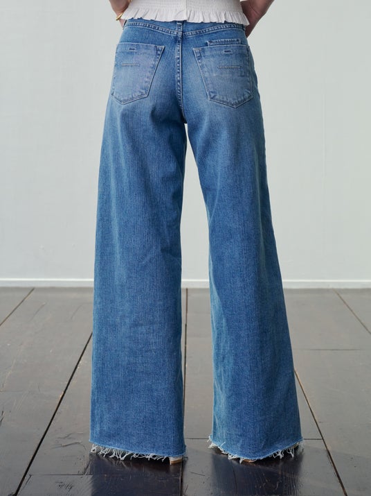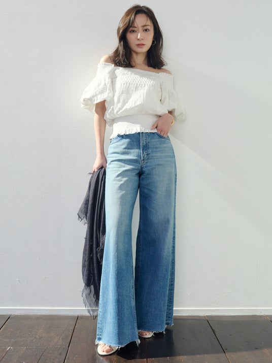 超淡色でありながら単調にならず、クリーンさとデニム特有の表情を併せ持つカラーリングが、大人のスタイリングにも自然に馴染む。