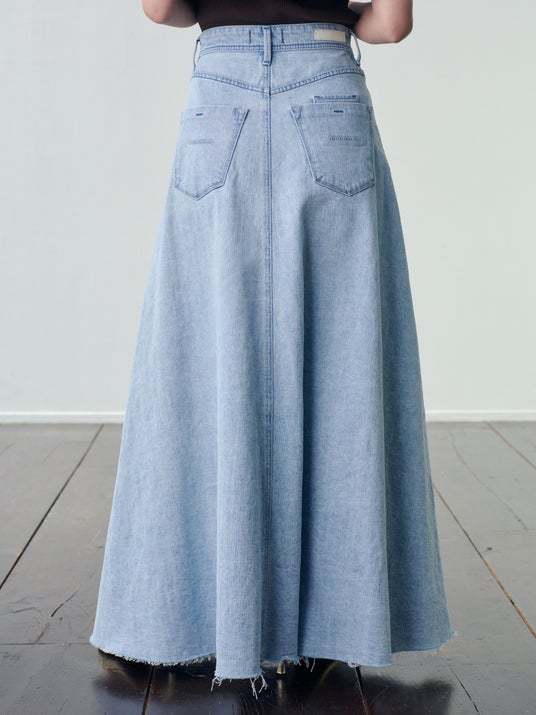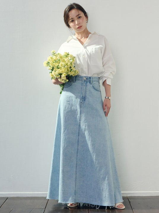 たっぷりとした分量感が魅力の、ロングデニムスカート。