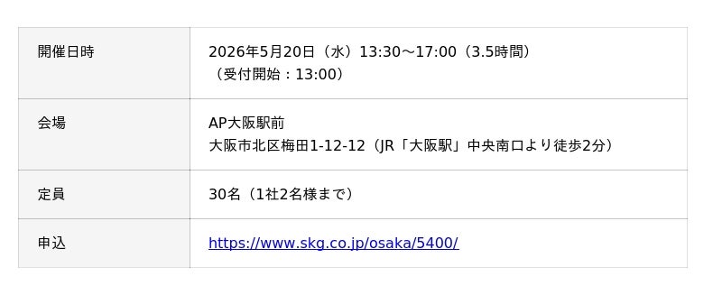 【大阪開催】:https://www.skg.co.jp/osaka/5400/