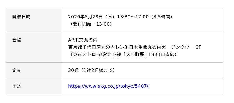 【東京開催】:https://www.skg.co.jp/tokyo/5407/