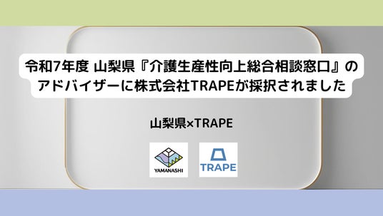 介護分野における生産性向上ガイドラインの作成など、2017年の黎明期から国のさまざまな施策づくりに深く関わり、ウェルビーイングに溢れた介護事業所を創出するために「生産性向上」「働きがい向上」「リーダー育成」の3つを一度に実現することができる生産性向上伴走支援サービス「Sociwell(ソシウェル)」、「生産性向上くん(R)︎」を展開している株式会社TRAPE(本社:大阪府大阪市、代表取締役社長:鎌田大啓)は、この度令和7年度山梨県・山梨県社会福祉協議会 「『介護生産性向上総合相談窓口』支援業務」に採択されましたのでお知らせいたします。